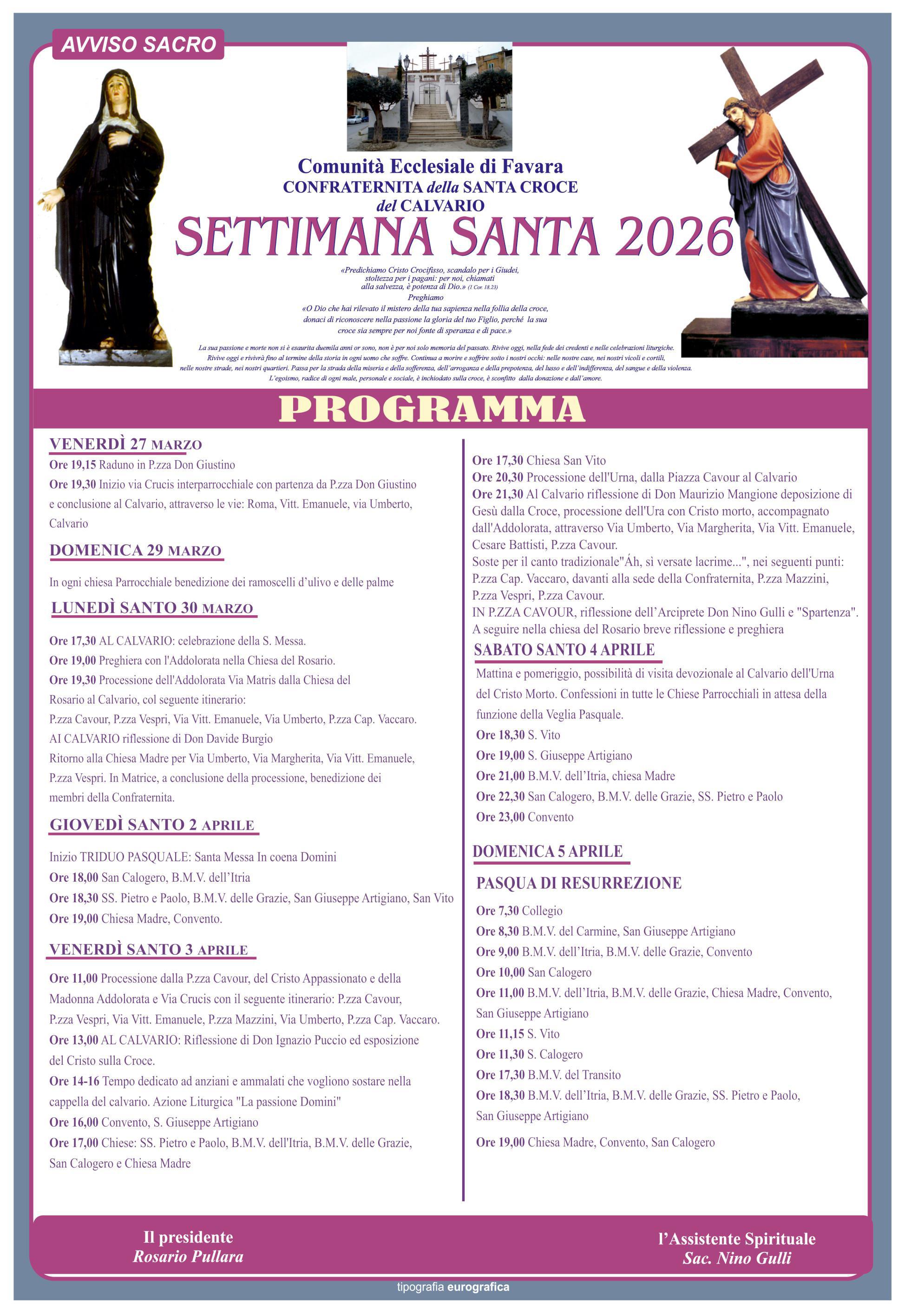 P.zza Cap. Vaccaro, davanti alla sede della Confraternita, P.zza Mazzini, P.zza Vespri, P.zza Cavour.
